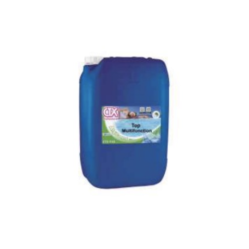 Cet oxydant très puissant, liquide, détruira les micro-organismes en quelques minutes. Il prévient la formation des algues et la turbidité de l'eau.